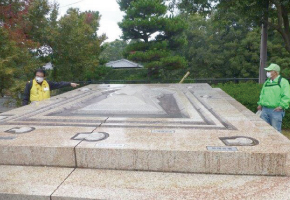 仁徳天皇陵拝所にて。百舌鳥古墳群のなかでも最も広い拝所。仁徳天皇陵古墳に近づける場所。