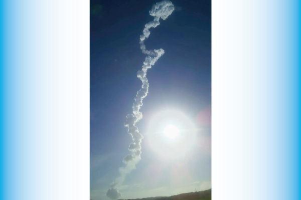 20日ロケットの打ち上げを庭先で見物しました。その様子は皆様もテレビ等でよく見られると思いますので今回は飛び去った後のロケット雲の写真を添付致します。
